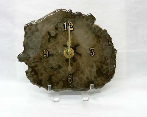Medium cut rock slabs with brass hardware. Clear acrylic stands are included. Photos are representative only. Each piece is unique.