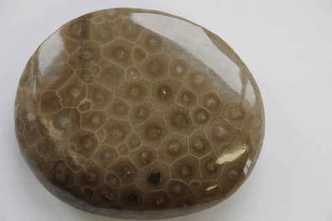Polished Petoskey stone comes in a boxed flat of 8 pieces. These stones can range from 4.5" to 5" in size. The Polished Petoskey stone is polished on one side and rough tumbled on the other side. Photos are representative only. Each piece is unique.