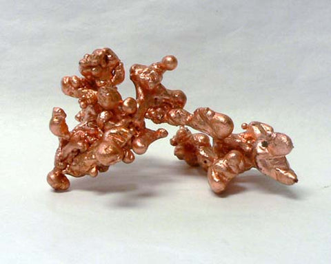 Native copper is used to form these interesting sculptures. Molten copper at 2200° F is poured into water soaked straw. The straw forms the shape, the burns away, and the copper forms solidify in the cool water.