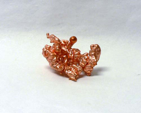 Native copper is used to form these interesting sculptures. Molten copper at 2200° F is poured into water soaked straw. The straw forms the shape, the burns away, and the copper forms solidify in the cool water.